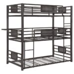 | • Heavy duty metal triple bunk bed finished in dark bronze • Available in triple twin and triple full configurations • Two convenient removable trays can be attached to any part of the bunk • Easily separates into three individual beds • Constructed with steel • Slat kits included |