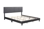 Bed frame with leather upholstery. Padded headboard offers additional comfort.