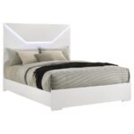 Ives Queen Panel Bed LED Headboard White High Gloss