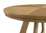 Versatile size and a timeless oak wood finish create a stylish pairing for this modern farmhouse round dining table. Its casual character is enhanced with a wedge veneer tabletop that creates a starburst effect, adding dimension and character to your kitchen or dining room. The thick tabletop and recessed apron are complemented with a decorative base that features flared legs and crossing stretchers, offering depth and stylish scale. The table is enhanced with joinery details that add craftsman character for a charming final touch. Choose this round table to seat four in your inviting dining space.