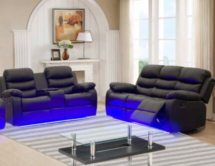 Havana Sofa And Loveseat With LED Lights 2PCS Black