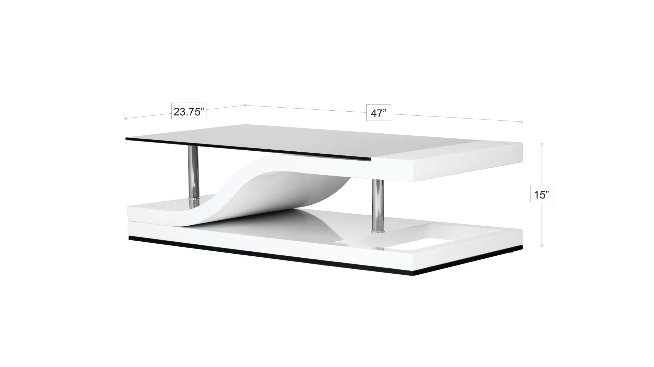 WHITE Gloss with smoked black glass top 47” x  23” x 14” H