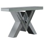 TAFFETA V-SHAPED MIRRORED ENTRYWAY CONSOLE TABLE SILVER